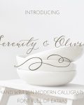 Introducing Serenity & Olivia! A beautiful flowing script font.  A fun, modern calligraphy script font with oodles of extra features so that you can have the effect of a modern calligraphy script as if it was written by you. Perfect for product packaging, branding, logo design, blog posts, wedding calligraphy or just for fun!